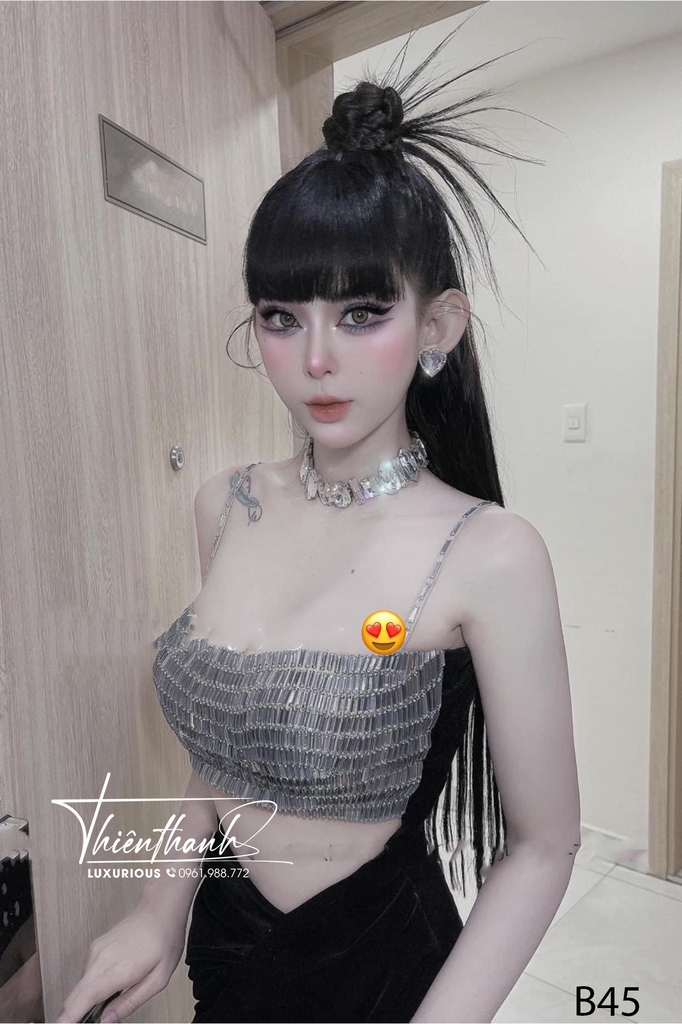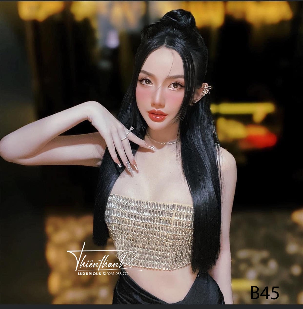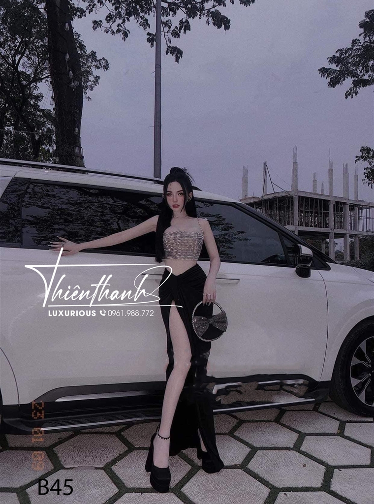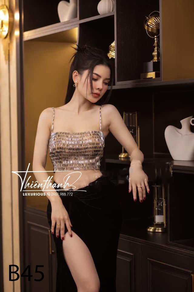 Đầm TK Dài Hai Dây Khoét Bụng Đính Đá Xẻ Tà