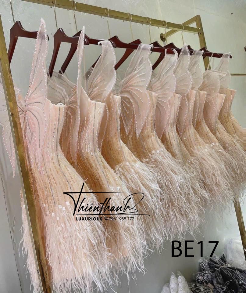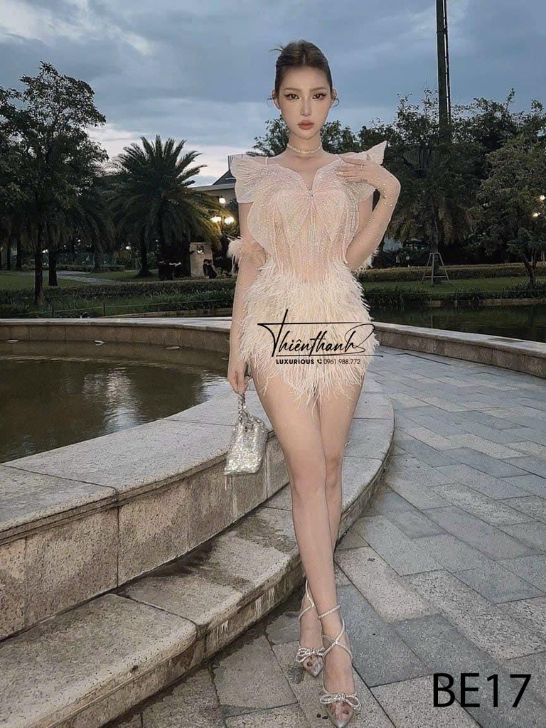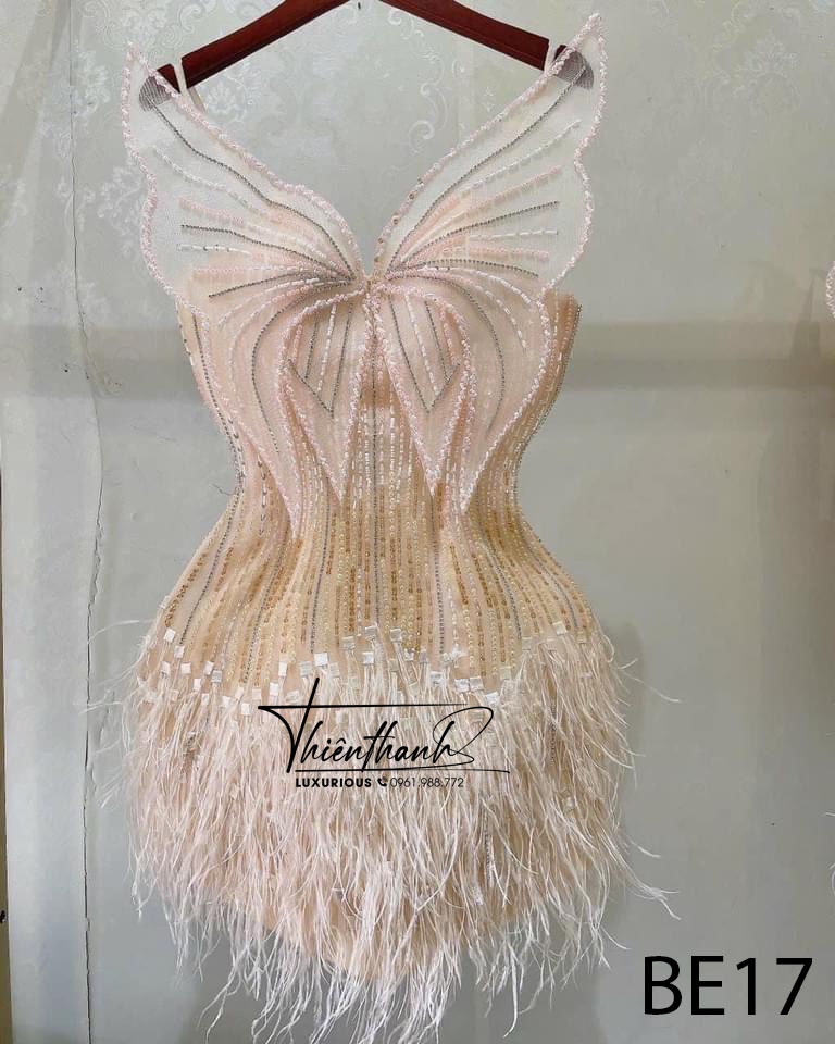 Đầm TK Hai Dây Ngắn Đính Bướm Lông Vũ