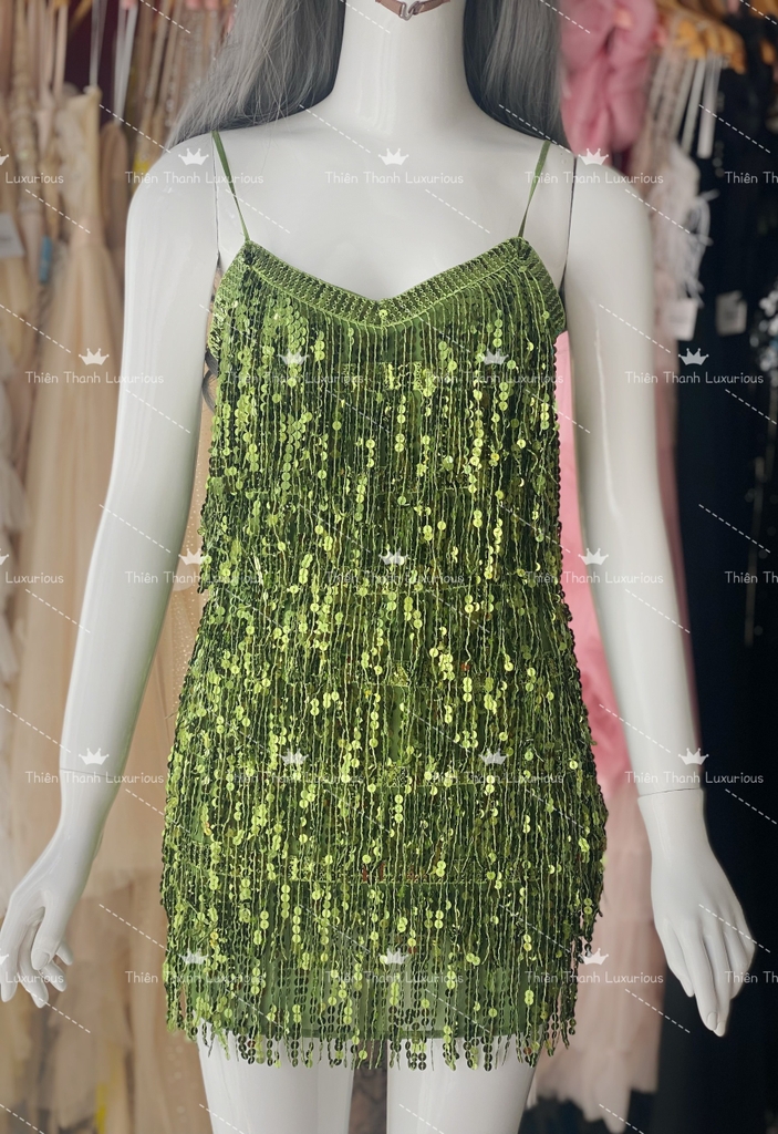 Đầm Ngắn TK Hai Dây Hở Lưng Đính Tua Rua